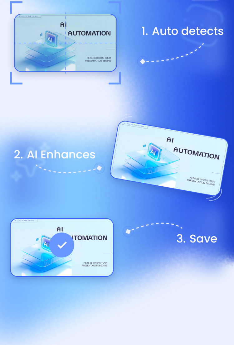 SlideCamAI automatically detects, straightens, and enhances presentation slides — so you can focus on the content, not fixing photos.